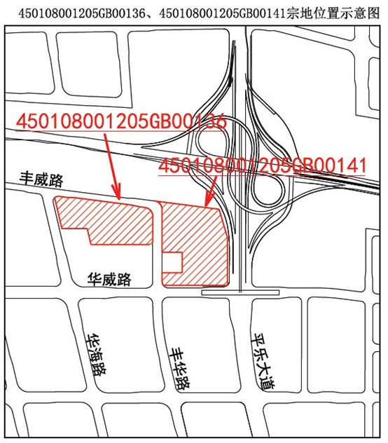 該地塊由450108001205GB00141宗地(A地塊)、450108001205GB00136宗地(B地塊)兩宗地組成。