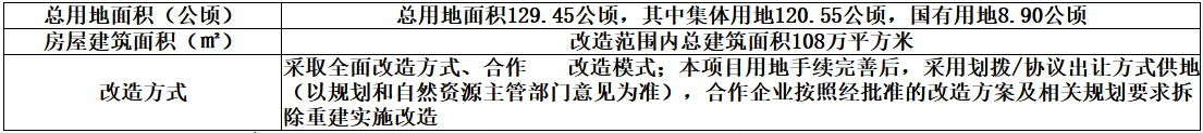 從項目片區居民情況看,葵蓬村居民2115戶,戶籍人口4136人。總用地面積129.45公頃,其中集體用地120.55公頃,國有用地8.90公頃。改造範圍內總建築面積108萬平方米。