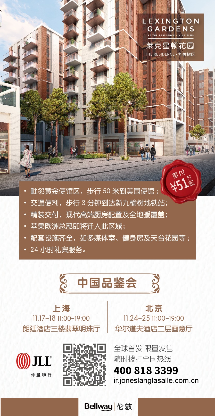 倫敦南岸被譽為倫敦的第三大城市中心,將發展成世界級目的地,其數億改建工程將大力提升市中心的生活及工作環境,位於南岸核心的九榆樹區將直接受益。入住萊剋星頓花園的居民可受益於餐館、咖啡館、酒店和新美術館林立的新建街區。