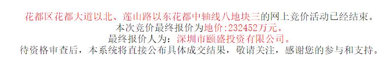中國網地產訊 10月9日,廣州花都1宗住宅用地成功出讓,經過4輪競拍,地塊由深圳市頤盛投資有限公司(頤安)以232452萬元競得,溢價率1.3%,成交樓麵價10679元/㎡,實際樓麵價11862元/㎡。